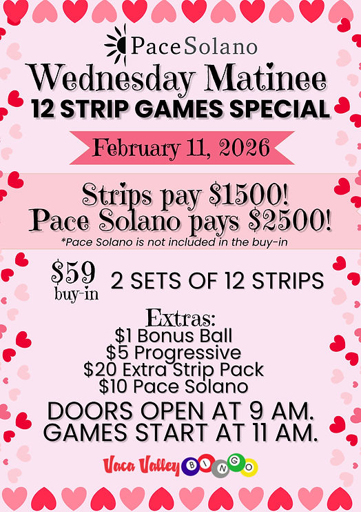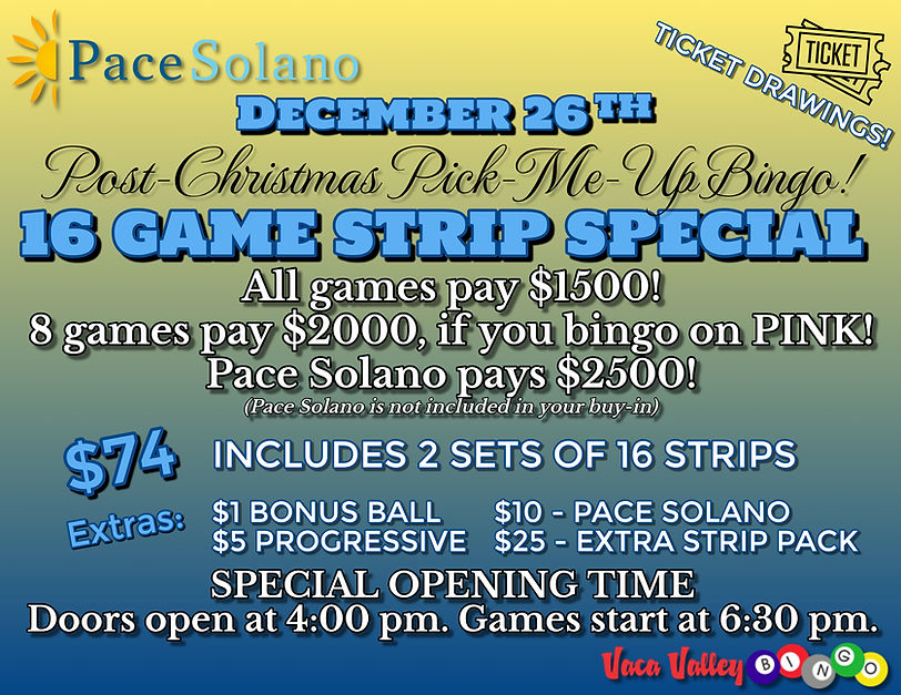 Bingo is played at 190 Bella Vista Rd in Vacaville, CA.
