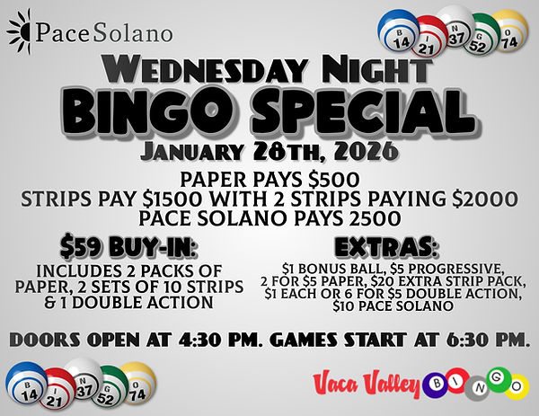 Bingo is played at 190 Bella Vista Rd in Vacaville, CA.