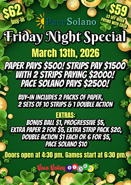 Bingo is played at 190 Bella Vista Rd in Vacaville, CA.